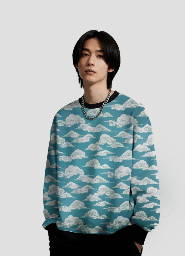 This is your new go-to for chill days and standout street style. Made with heavyweight 240 GSM premium poly brushed fleece and a plush inner lining, this sweatshirt keeps you cozy and comfortable. The all-over print features traditional Japanese Edo-style clouds across a bright blue canvas—no Mount Fuji, just pure cloud vibes. Fade-proof sublimation means the design stays sharp and vibrant through every wear and wash.